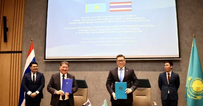 “ภูมิธรรม” ลงนามความตกลงว่าด้วยความร่วมมือทางเศรษฐกิจและการค้าระหว่างไทยและคาซัคสถาน เปิดทางร่วมมือทางเศรษฐกิจและการค้าในสาขาต่าง ๆ ที่เป็นประโยชน์ร่วมกัน อีกทั้งยังเป็นประตูสำคัญสู่ตลาดเอเซียกลางที่มีประชากรกว่า 80 ล้านคน เผยยังจะช่วยให้เกิดความร่วมมือและการมีส่วนร่วมของภาคเอกชนในกิจกรรมส่งเสริมการค้า ทั้งการเข้าร่วมงานแสดงสินค้า การเจรจาจับคู่ธุรกิจ