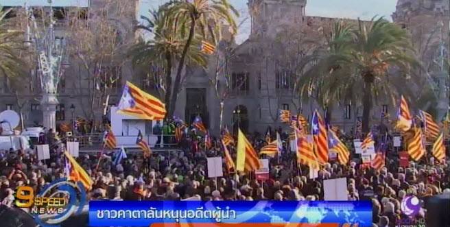 ผู้สนับสนุนการแยกตัวเป็นเอกราชของแคว้นคาตาโลเนีย หลายหมื่นคนชุมนุมหน้าศาลในบาร์เซโลนา ให้กำลังใจอดีตผู้นำแคว้นคาตาโลเนีย
