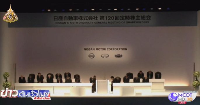 ผู้บริหารนิสสันโค้งคำนับขอโทษผู้ถือหุ้น กรณีเรื่องอื้อฉาว “คาร์ลอส กอส์น”