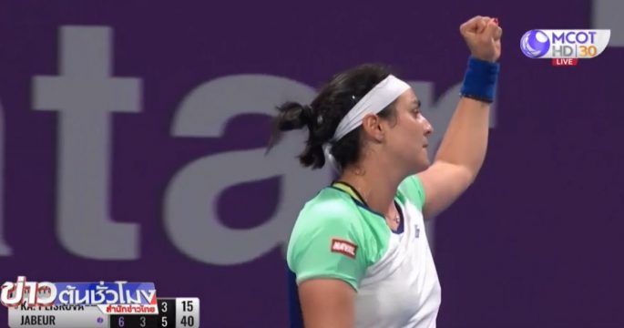ออนส์ จาเบอร์ มือ 44 ของโลกจากตูนิเซีย ชนะ คาโรลินา พลิสโควา มือ 3 ของโลกจากเช็ก 2-1 เซต 6-4, 3-6 และ 6-3 ผ่านเข้ารอบ 8 คนสุดท้ายเทนนิสกาตาร์ โอเพ่น