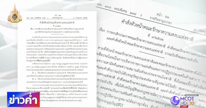 ราชกิจจานุเบกษา เผยแพร่คำสั่งหัวหน้าคณะรักษาความสงบแห่งชาติที่ 9/2562 ยกเลิกประกาศคณะรักษาความสงบแห่งชาติ คำสั่งคณะรักษาความสงบแห่งชาติ และคำสั่งหัวหน้าคณะรักษาความสงบแห่งชาติ บางฉบับที่หมดความจำเป็น รวม 66 ฉบับ