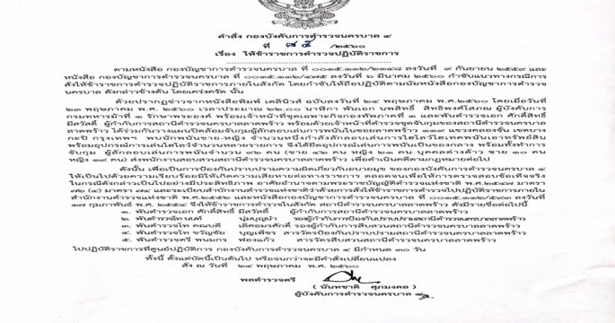 ผู้บังคับการตำรวจนครบาล 4 เซ็นคำสั่งเด้ง 5 เสือ สน.ลาดพร้าว หลังทหารบุกจับบ่อนไฮโลเมื่อคืน พร้อมพ่วง 4 เสือ สน.หัวหมาก โดยให้ทั้งหมดไปปฏิบัติหน้าที่ที่กองบังคับการตำรวจนครบาล 4 30 วัน มีผลตั้งแต่วันนี้เป็นต้นไป