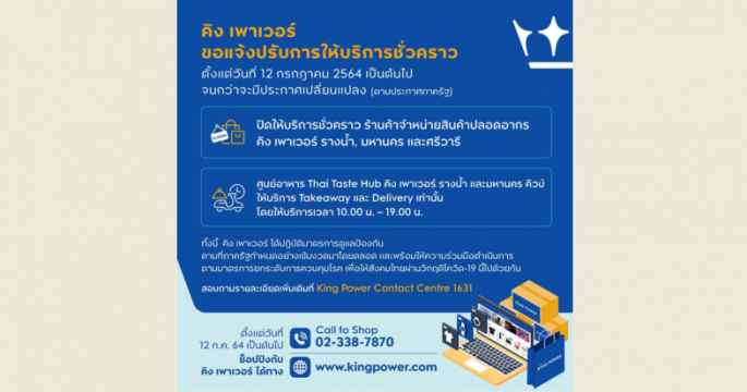 คิงเพาเวอร์ปรับช่องทางช้อปปิ้งสอดรับมาตรการศบค.