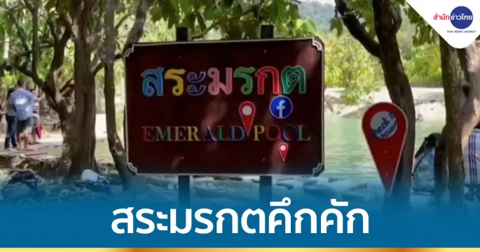 สระมรกต แหล่งท่องเที่ยวอันซีนของ จ.กระบี่ กลับมาคึกคักอีกครั้ง หลังจากปิดมานานกว่า 2 ปี เนื่องจากสถานการณ์การแพร่ระบาดของโควิด โดยควบคุมจำนวนนักท่องเที่ยวเข้าพื้นที่ไม่เกิน 300 คน