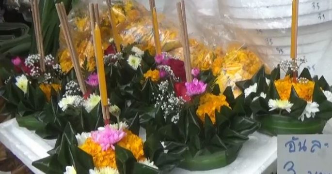 พรุ่งนี้ตรงกับวันลอยกระทง บรรดาพ่อค้าแม่ค้าร้านขายดอกไม้ตลาดต้นลำไยเชียงใหม่ นำวัสดุอุปกรณ์ทำกระทงมาวางขาย
