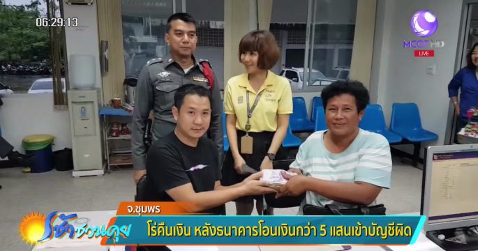 หนุ่มเจ้าของร้านขายมือถือชุมพรเป็นงง อยู่ดีๆ มีเงินกว่า 500,000 บาท โอนเข้าบัญชี รีบรุดคืนให้เจ้าของเงินตัวจริงที่โรงพัก เหตุเกิดจากธนาคารโอนเงินเข้าบัญชีให้ผิด เพราะชื่อเหมือน-นามสกุลคล้าย