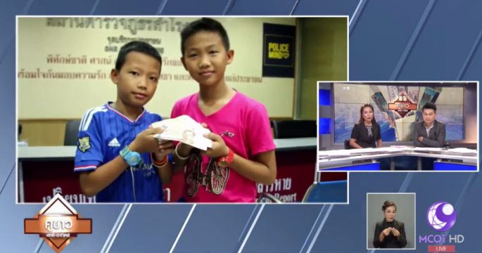 สองเด็กชายเก็บกระเป๋าของทหารเรือชั้นผู้ใหญ่ได้ที่ริมคลองสำโรง จ.สมุทรปราการ ภายในมีทรัพย์สินประมาณ 1 แสนบาท จึงนำมาให้ตำรวจตามหาเจ้าของจนพบ