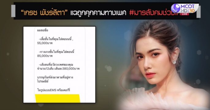 ดาราสาว “เกรซ พัชร์สิตา-ตูน พิมพ์ปวีณ์-มิงค์ ณัฐรินีย์” เตรียมเข้าแจ้งความถูกหนุ่มนิรนาม คุกคามทางเพศ ด้วยการโพสต์ข้อความผ่านโซเชียลมีเดีย ขอซื้อชุดชั้นใน-ชักชวนให้ร่วมหลับนอน