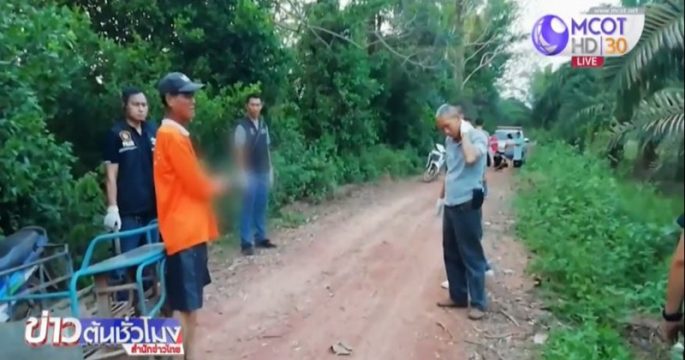 คุมตัวชายวัย 64 ใช้มีดดาบฟันชายวัย 54 เสียชีวิตริมหนองน้ำ ไปทำแผนประกอบคำรับสารภาพ สาเหตุเพราะมีปัญหาขัดใจเรื่องแย่งผู้หญิงกัน