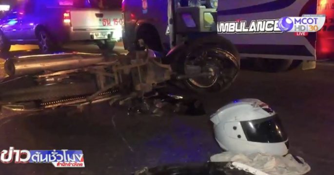 หนุ่มซิ่งเก๋งชนรถจักรยานยนต์ที่มี 2 สาวนั่งซ้อนท้ายมาด้วย ไถลไปชนอัดกับรถปิกอัพ ส่งผลให้ทั้ง 2 สาว และคนขับปิกอัพอาการสาหัส