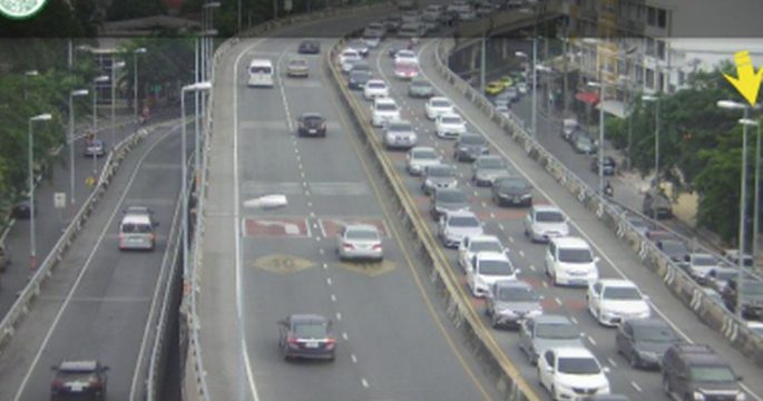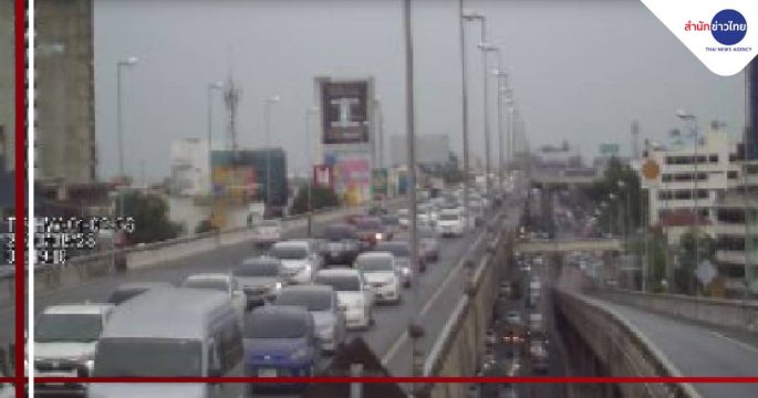 สวพ.FM 91 รายงานจราจรเช้าวันศุกร์ คู่ขนานลอยฟ้า ขาเข้า ขึ้นสะพานพระราม 8 การจราจรติดขัดมาก ท้ายสะสมเลยโค้งวัดอมรคีรี