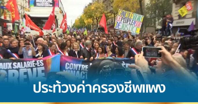ชาวฝรั่งเศสหลายพันคนในกรุงปารีส ร่วมชุมนุมประท้วงต่อต้านปัญหาค่าครองชีพสูง เรียกร้องรัฐบาลตรึงราคาน้ำมัน-ขึ้นค่าแรง