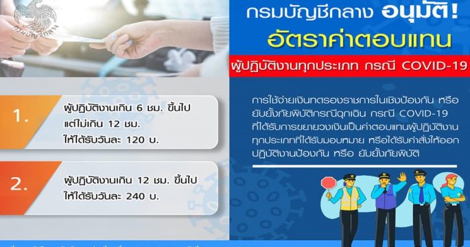 กรมบัญชีกลางอนุมัติค่าตอบแทนผู้ปฏิบัติงานทุกประเภท กรณี COVID-19 จากเงินทดรองราชการฯ ที่ได้รับการขยายวงเงินฯ เป็นกรณีพิเศษ