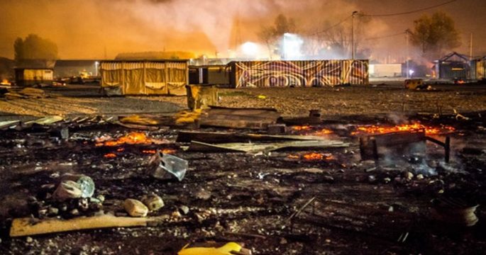 ไฟไหม้ค่ายผู้อพยพกรองด์-ซางธ์ ซึ่งเป็นค่ายใหญ่ใกล้เมืองดันเคิร์ก ทางเหนือของฝรั่งเศส กลางดึกวานนี้ จนเหลือแต่เถ้าถ่าน สันนิษฐานว่าเป็นการวางเพลิง