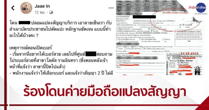 ลูกค้าค่ายมือถือแห่งหนึ่ง โพสต์ข้อความผ่านโซเชียลมีเดีย ร้องโดนผู้ให้บริการปลอมแปลงเอกสารสัญญาบริการ จาก 2 ปี เป็น 3 ปี