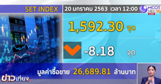 ดัชนีหุ้นไทยเช้านี้ปรับลดลง วิตกโรคปอดอักเสบระบาดกระทบกลุ่มท่องเที่ยว ขณะที่กองทุน IMF ปรับลด GDP โลก และผลประกอบการกลุ่มแบงก์ออกมาไม่ดี