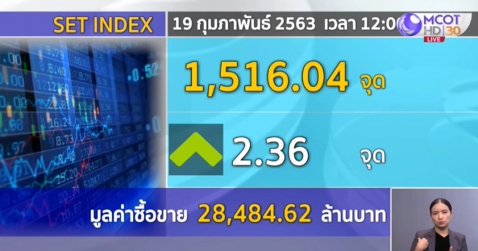หุ้นไทยเช้านี้ปรับขึ้นตามภูมิภาค หลังตัวเลขเศรษฐกิจสหรัฐ-จีนแข็งแกร่ง พร้อมจับตาวุฒิสภาถกงบประมาณปี 63 วันนี้ ก่อนปิดลบ 8.18 จุด