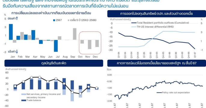 กรุงเทพฯ 9 ม.ค.- ค่าเงินบาทเปิดเช้านี้ ที่ระดับ 34.97 บาทต่อดอลลาร์ “แข็งค่าขึ้นเล็กน้อย” Krungthai GLOBAL MARKETS มองกรอบเงินบาทวันนี้ ที่ระดับ 34.75-35.00 บาท/ดอลลาร์ ตลาดรอลุ้นถ้อยแถลงของเฟด นายพูน พานิชพิบูลย์ นักกลยุทธ์ตลาดเงินตลาดทุน Krungthai GLOBAL MARKETS ธนาคารกรุงไทย เปิดเผยว่า ค่าเงินบาทเปิดเช้านี้ ที่ระดับ 34.97 บาทต่อดอลลาร์ “แข็งค่าขึ้นเล็กน้อย” จากระดับปิดวันก่อนหน้า ที่ระดับ 35.04 บาทต่อดอลลาร์ โดยในช่วงคืนก่อนหน้า ค่าเงินบาทเคลื่อนไหวทยอยแข็งค่าขึ้น (แกว่งตัวในช่วง 34.86-35.07 บาทต่อดอลลาร์) ตามการอ่อนค่าลงของเงินดอลลาร์และจังหวะการย่อตัวลงของบอนด์ยีลด์ 10 ปี สหรัฐฯ ที่ได้หนุนให้ราคาทองคำสามารถรีบาวด์ขึ้นจากโซนแนวรับเกือบ +20 ดอลลาร์ต่อออนซ์ ทำให้ผู้เล่นในตลาดบางส่วนอาจทยอยขายทำกำไรการรีบาวด์ของราคาทองคำและโฟลว์ธุรกรรมดังกล่าวก็มีส่วนช่วยหนุนการแข็งค่าของเงินบาท ขณะเดียวกัน การอ่อนค่าเหนือระดับ 35.00 บาทต่อดอลลาร์ ของเงินบาท ได้หนุนให้ผู้เล่นในตลาด โดยเฉพาะผู้ส่งออกบางส่วน ทยอยเข้ามาขายเงินดอลลาร์เพิ่มเติม ทำให้เงินบาทยังไม่สามารถอ่อนค่าทะลุโซนแนวต้านสำคัญไปได้ไกล […]