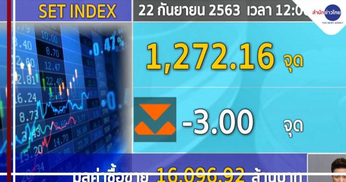 22 ก.ย. – หุ้นไทยภาคเช้าปรับตัวลงตามตลาดหุ้นต่างประเทศ จากความกังวลการระบาดของโควิด-19 ระลอกสอง จนเกิดการล็อกดาวน์ในหลายประเทศอีกครั้ง ขณะที่มีแรงเทขายในหุ้นกลุ่มแบงก์ จากข่าวที่มีรายชื่อธนาคารพาณิชย์ 4 แห่งของไทยมีส่วนเกี่ยวข้องกับการทำธุรกรรมการโอนเงินที่น่าสงสัย ดัชนี อยู่ที่ 1,272.16 จุด ลดลง 3.00 จุด มูลค่าซื้อขาย 16,096.92 ล้านบาท ค่าเงินบาทเปิดตลาดวันนี้อ่อนค่าที่ 31.27 บาทต่อดอลลาร์ เนื่องจากดอลลาร์แข็งค่า และมีความกังวลโควิด-19 และกังวลข่าวธุรกรรมน่าสงสัยของบรรดาธนาคารใหญ่ทั่วโลก รวมถึงแบงก์ไทย 4 แห่ง ขณะที่ ราคาทองคำ ลดลง 200 บาท ทองแท่งขายออก บาทละ 28,400 บาท ทองรูปพรรณ ขายออกบาทละ 28,900 บาท .- สำนักข่าวไทย