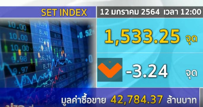 หุ้นไทย เช้านี้ เคลื่อนไหว แดนลบ ล่าสุด 1,533.25 จุด ปรับลง 3.24 จุด ด้านเงินบาท เคลื่อนไหวที่ระดับ 30.17 บาทต่อดอลลาร์