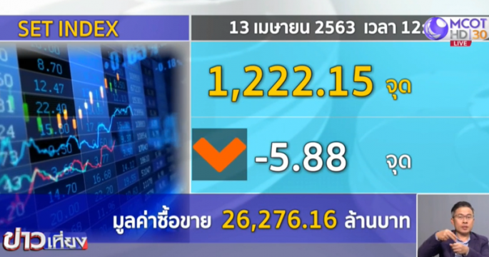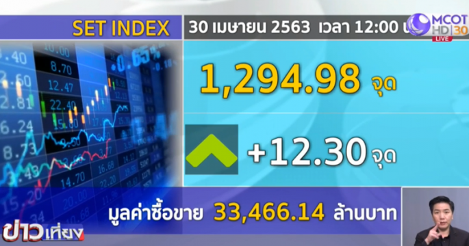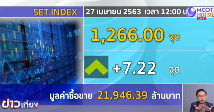 ดัชนีหุ้นไทยช่วงเช้าพุ่งแรงตามตลาดต่างประเทศ หลังจำนวนผู้ติดเชื้อโควิด-19 เริ่มชะลอลง โดยปิดตลาดภาคเช้าบวกเพิ่ม 14.39 จุด