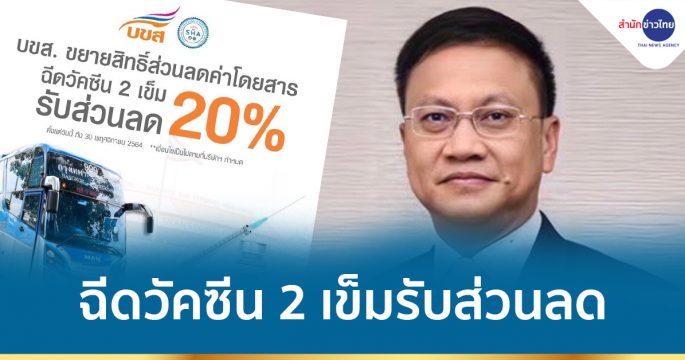 บขส. ขยายโปรโมชั่นฉีดวัคซีน 2 เข็ม รับส่วนลดค่าโดยสารเพิ่ม 20% ถึงสิ้นเดือนพฤศจิกายนนี้ พร้อมพัฒนาระบบจองตั๋วออนไลน์ ผ่านแอปพลิเคชัน E-Ticket “จอง จ่าย ได้ชัวร์”