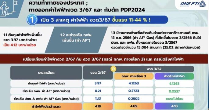 เอกชนแนะทางออกค่าไฟงวด 3/2567 แพง ย้ำตรึงค่าไฟ 4.18 บาทคือทางรอด