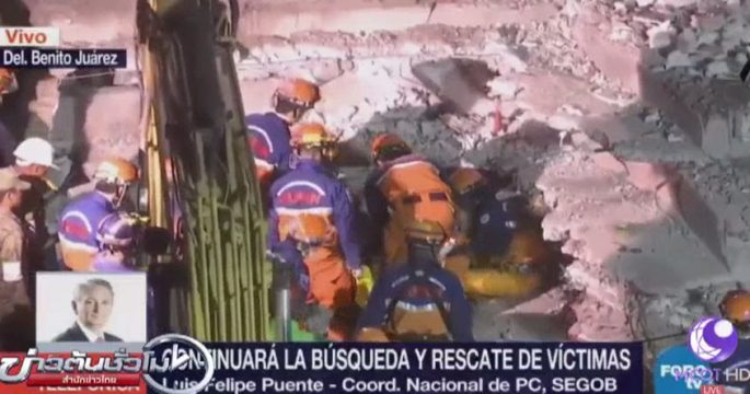 ทีมกู้ภัยของญี่ปุ่นให้ความช่วยเหลือค้นหาผู้รอดชีวิตที่ติดอยู่ใต้กองซากอาคารในกรุงเม็กซิโกซิตี ที่พังถล่มลงมาจากเหตุแผ่นดินไหว 7.1 แม็กนิจูด