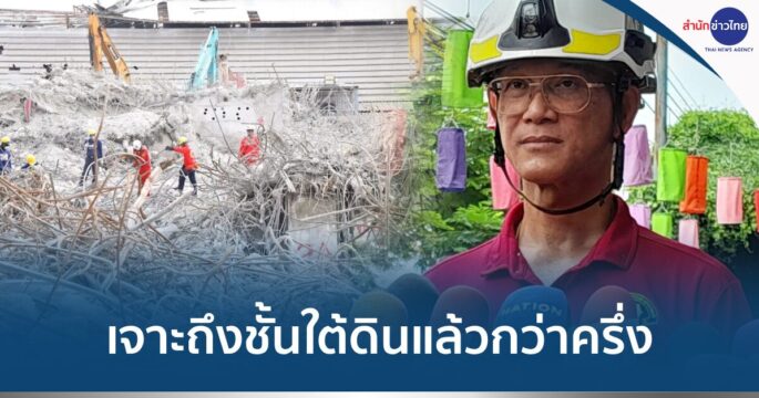 กทม. เผยความคืบหน้าปฏิบัติการค้นหาผู้สูญหายเหตุอาคารสำนักงาน สตง. ถล่มจากแผ่นดินไหว เจาะถึงชั้นใต้ดินแล้วกว่าครึ่ง ย้ำทำต่อจนกว่ามั่นใจไม่มีผู้รอดชีวิตเหลือ
