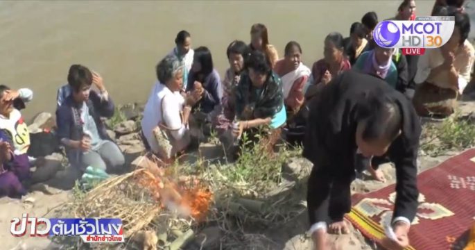 ชาวบ้านทำบุญให้ชายนิรนามถูกฆ่าคว้านท้องถ่วงแม่น้ำโขง