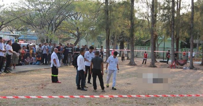 ตำรวจล้อมจับพ่อบ้านร้านสปาเมืองภูเก็ตยิงคนในร้านบาดเจ็บหนีมาซ่อนตัวสวนในสาธารณะปลายแหลมสะพานหิน แต่ไม่ยอมให้จับกุมใช้ปืนยิงตัวเองดับ