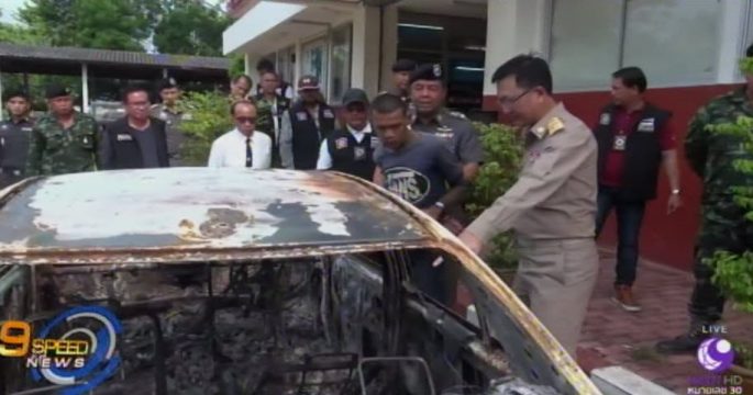 ผู้ว่าฯ ปราจีนบุรี และตำรวจ นำผู้ต้องหาปาดคอเพื่อนร่วมวงเหล้าก่อนจุดไฟเผาทั้งเป็น ไปทำแผนประกอบคำรับสารภาพ