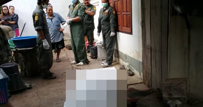 พบชายเร่รอนถูกฆ่าปาดคอ มือทั้งสองข้างถูกมัดไพล่หลังด้วยสายไฟ บริเวณใต้สะพานยกระดับรังสิต มุ่งหน้าเข้า กทม. อ.ธัญบุรี จ.ปทุมธานี
