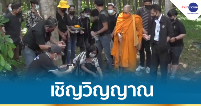ญาติเชิญดวงวิญญาณ “สุชาติ” กลับบ้าน ที่จุดคนร้ายฝังศพในสวนยาง บรรยากาศเศร้า ภรรยาผู้ตายเผยสามีมามาเข้าฝัน นั่งกอดเข่าบอกว่ากลับบ้านไม่ได้
