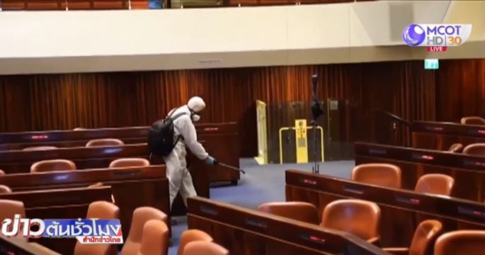 อิสราเอลทำความสะอาดและฆ่าเชื้อโรคที่รัฐสภา ก่อนจะมีพิธีสาบานตนให้สมาชิกสภาผู้แทนราษฎรชุดใหม่จำนวน 120 คน ในวันนี้ เพื่อป้องกันโควิด-19