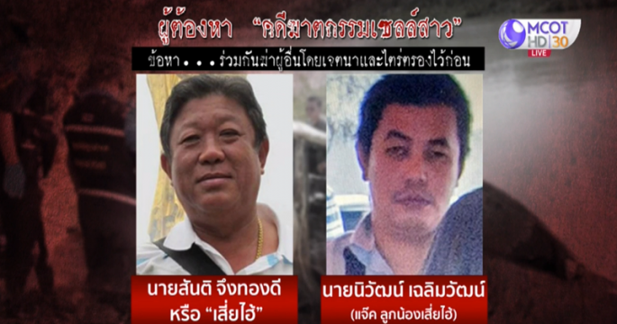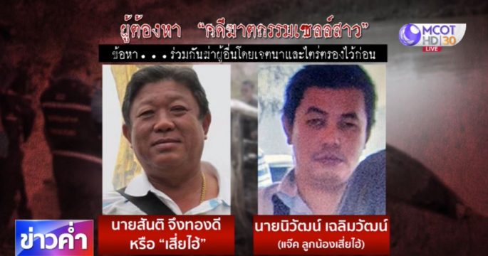 ออกหมายจับแล้ว เสี่ยเจ้าของบริษัทปุ๋ย และลูกน้องอีก 1 คน ฐานร่วมฆ่าเซลส์สาวหมกรถทิ้งคลองนานกว่า 3 ปี ในพื้นที่ จ.สระบุรี ตำรวจเชื่อยังกบดานในพื้นที่ มั่นใจจับกุมตัวได้เร็วๆ นี้ ส่วนสาเหตุเกิดจากความหึงหวง ปมชู้สาว