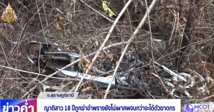 ความคืบหน้าคดีฆ่าโหดเผาอำพรางสาววัย 18 ปี ที่ อ.กาญจนดิษฐ์ จ.สุราษฎร์ธานี ล่าสุดในเชิงคดียังไม่มีความคืบหน้ามากนัก ขณะที่ญาติของผู้เสียชีวิตมั่นใจว่า ผู้เสียชีวิตถูกฆ่ามาจากที่อื่น