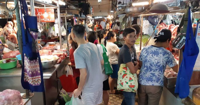ตลาดสดห้วยขวาง เริ่มปรับตัว พ่อค้าแม่ค้าประชาสัมพันธ์ อนาคตอาจงดแจกถุงพลาสติก แต่ผู้บริโภคส่วนใหญ่ ลืมถือถุงผ้า