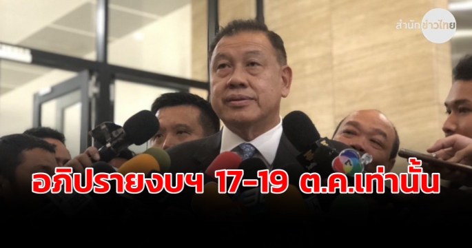 วิปรัฐบาล ยืนยัน ถกอภิปรายงบประมาณ 2563 วันที่ 17-19 ต.ค.เท่านั้น รอคุยฝ่ายค้านแบ่งเวลา ยืนยัน ไม่กังวล ส.ส.รัฐบาลพร้อมลงมติทุกเมื่อ