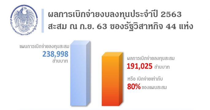 สคร.ติดตามการเบิกจ่ายงบลงทุนของรัฐวิสาหกิจ ช่วงไตรมาสสุดท้ายของปี 2563 อย่างใกล้ชิด