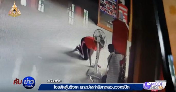โจรงัดตู้บริจาควัดบ้านอ้น จ.ร้อยเอ็ด ขณะช่างกำลังทดสอบกล้องวงจรปิด จึงแจ้งพระในวัดทราบแล้วโทรแจ้งตำรวจเพื่อจับกุม แต่คนร้ายไหวตัวทันหลบหนีไปได้