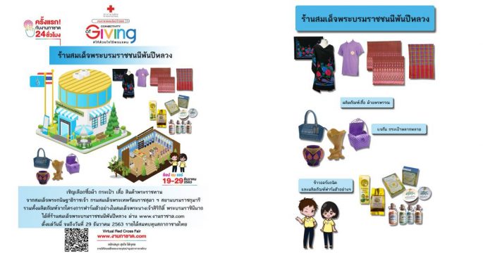 ให้ด้วยใจไร้พรมแดน ครั้งแรกกับงานกาชาดออนไลน์ 24 ชั่วโมง เชิญชวนเลือกซื้อผ้า กระเป๋า เสื้อ สินค้าพระราชทานจากสมเด็จพระกนิษฐาธิราชเจ้า กรมสมเด็จพระเทพรัตนราชสุดา ฯ สยามบรมราชกุมารี