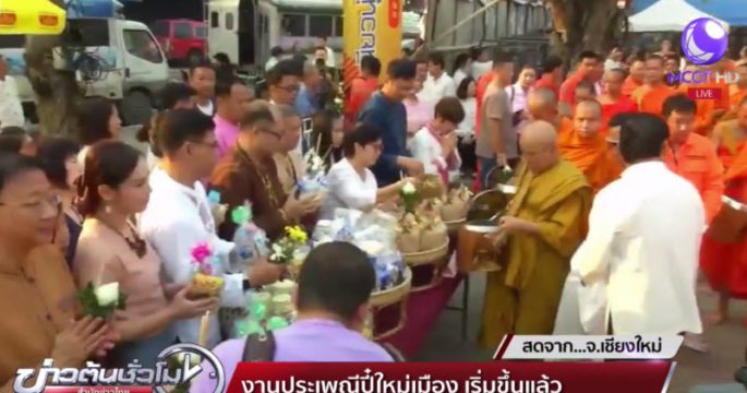 งานประเพณีปี๋ใหม่เมือง จ.เชียงใหม่ เริ่มขึ้นอย่างเป็นทางการแล้ว โดยช่วงเช้า ชาวเชียงใหม่และนักท่องเที่ยวร่วมกันทำบุญตักบาตร เพื่อความเป็นสิริมงคล