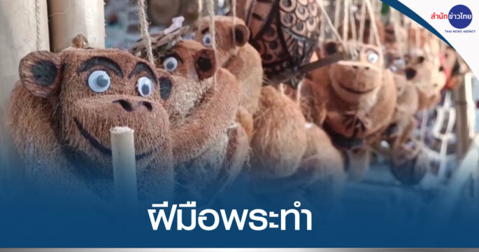 สะดุดตา “ลิงจากมะพร้าว” ของที่ระลึกฝีมือพระวัดเกาะเต่า จ.สุราษฎร์ธานี ที่ใช้เวลาว่างจากการเรียนรู้พระธรรมคำสอน มาช่วยเหลือชาวบ้านด้วยการสอนงานฝีมือให้เป็นอาชีพเสริม