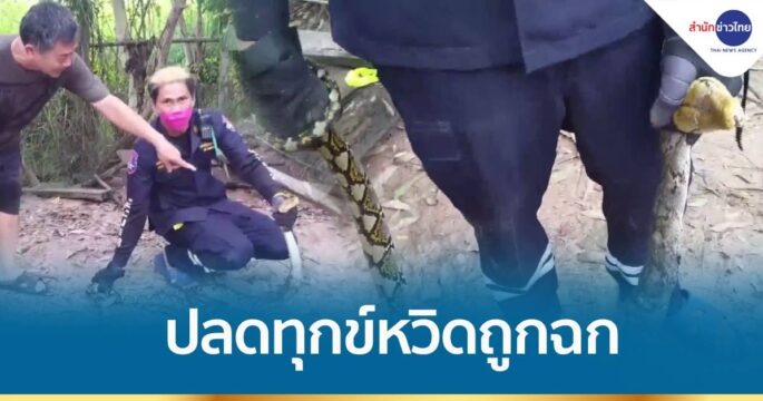 งูหลามขนาด 4 เมตร แอบกินไก่ชาวบ้านที่ จ.ประจวบคีรีขันธ์ เจ้าหน้าที่กู้ภัยจับใส่กระสอบปุ๋ย นำปล่อยคืนสู่ธรรมชาติ