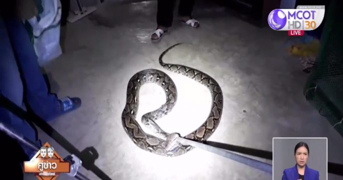 สาวแทบช็อกเปิดไฟจ๊ะเอ๋งูเหลือมยาวกว่า 3 เมตร เลื้อยอยู่กลางบ้าน งาบลูกแมวหายไป 2 ตัว