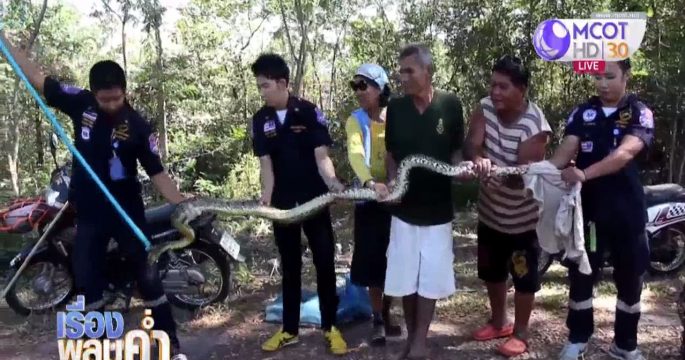 ชายชาวอุดรธานี วางลอบดักปลา คิดว่าได้ตัวใหญ่ ยกดูตกใจ ได้งูเหลือมยาว 5 เมตร