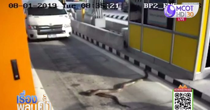 คลิปนี้ ไม่ปรากฏว่าเป็นด่านขึ้นทางด่วนจุดไหน แต่ที่เห็นคือ พี่เหลือมตัวเขื่องนอนขวางลำอยู่บนทางด่วน