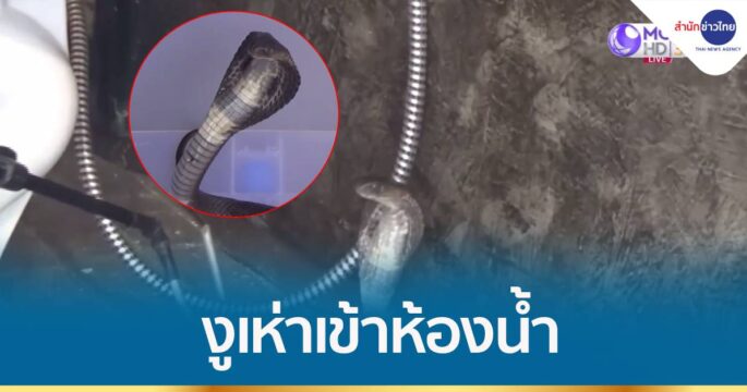 บุญรักษาที่เห็นก่อน! แม่พาลูกชายเข้าห้องน้ำจะปลดทุกข์ ผงะเจองูเห่าชูคอแผ่แม่เบี้ยขู่ฟ่อๆ รีบคว้าเสื้อลูกถอยออกมา โทรแจ้งกู้ภัยนักล่างู จ.สระบุรี มาจับไปปล่อยคืนสู่ธรรมชาติ