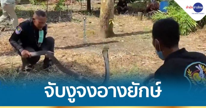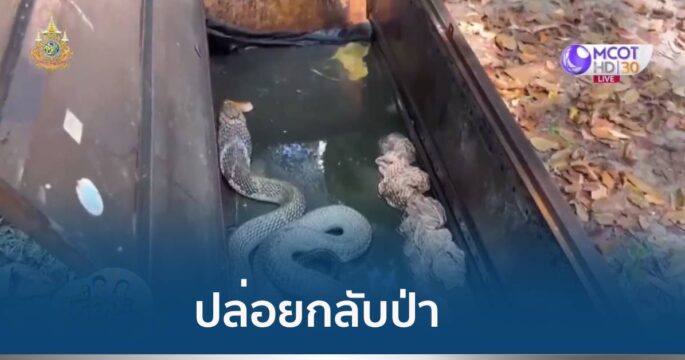 ลุ้นจับจงอางยักษ์ 5 เมตร อีกตัวหนีเข้าป่าหาไม่เจอ